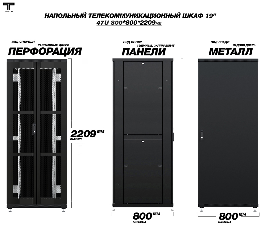 - Тип размера: 47U (ШхГхВ) 800х800x2209мм
