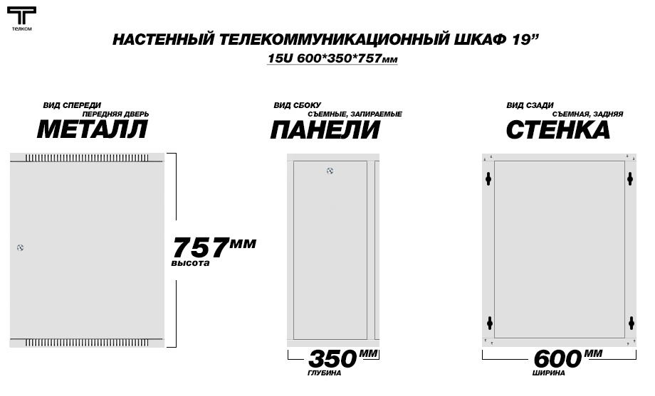 В комплектации TL-15.6.3-M настенного 19" шкафа ТЕЛКОМ TL: