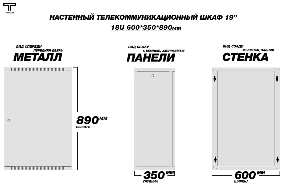 - Тип размера: 18U (ШхГхВ) 600х350x890мм