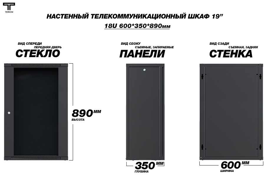 Шкаф настенный 18U телекоммуникационный 19" ТЕЛКОМ TL-18.6.3-С.9005МА