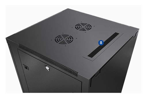 В стандартной конфигурации шкаф оборудован: задней стенкой, передними и задними монтажными профилями и двумя кабельным вводами сверху и снизу. Легкий доступ к установленному оборудованию организован за счет съемных боковых панелей. В шкафу великолепно продумана естественная (пассивная) вентиляция, за счет перфорации в корпусе шкафа и на передней дверце. А так же, конструктивно, предусмотрена установка активной вентиляции.