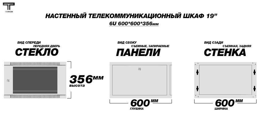 - Тип размера: 6U (ШхГхВ) 600х600x356 мм
