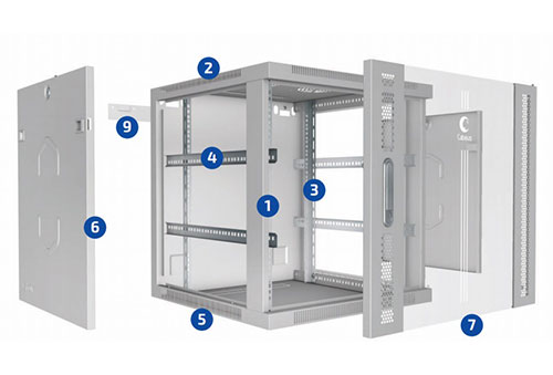 В стандартной конфигурации шкаф оборудован: задней стенкой, передними и задними монтажными профилями и двумя кабельным вводами сверху и снизу. Легкий доступ к установленному оборудованию организован за счет съемных боковых панелей. В шкафу великолепно продумана естественная (пассивная) вентиляция, за счет перфорации в корпусе шкафа и на передней дверце. А так же, конструктивно, предусмотрена установка активной вентиляции.