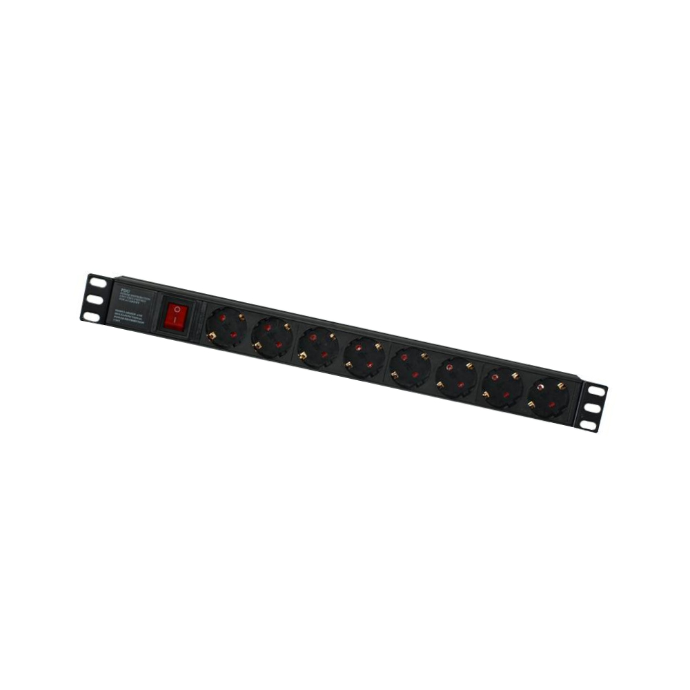 Блок розеток 19 дюймов на 8 гнезд предназначен для обеспечения электропитания в серверных телекоммуникационных шкафах.