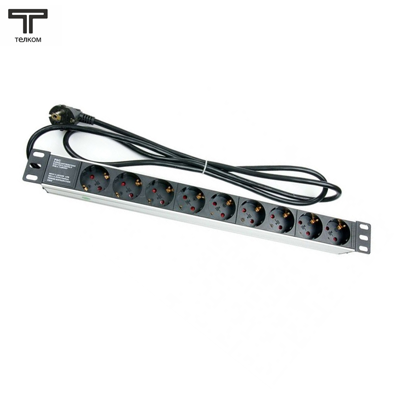 ТЕЛКОМ PDU-LX-02 9P.SW Блок евророзеток для 19" шкафов, 9 розеток 220В (Schuko), 16 A, без выключателя, шнур 2м