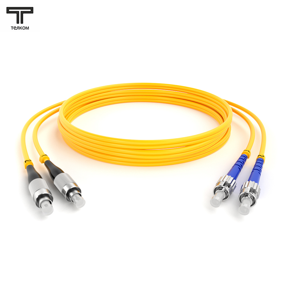 ТЕЛКОМ ШОС-2x3.0-2FC/UPC-2ST/UPC-SM-9м-LSZH-YL Шнур оптический duplex FC-ST 9/125 OS2 (G.652.D) одномодовый SM (3.0мм) LSZH длина 9м