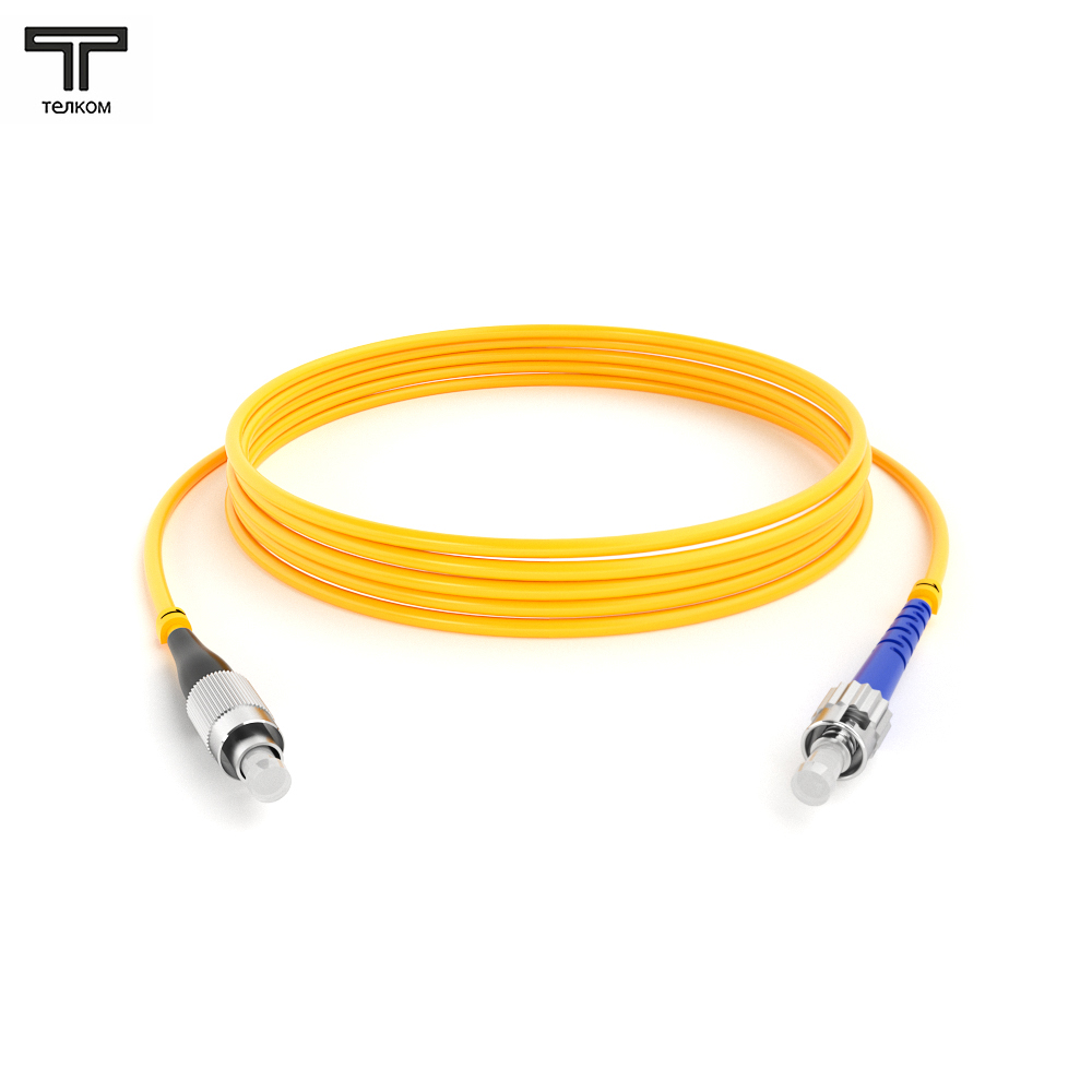 ТЕЛКОМ ШОС-3.0-FC/UPC-ST/UPC-SM-50м-LSZH-YL Шнур оптический simplex FC-ST 9/125 OS2 (G.652.D) одномодовый SM (3.0мм) LSZH, длина 50м