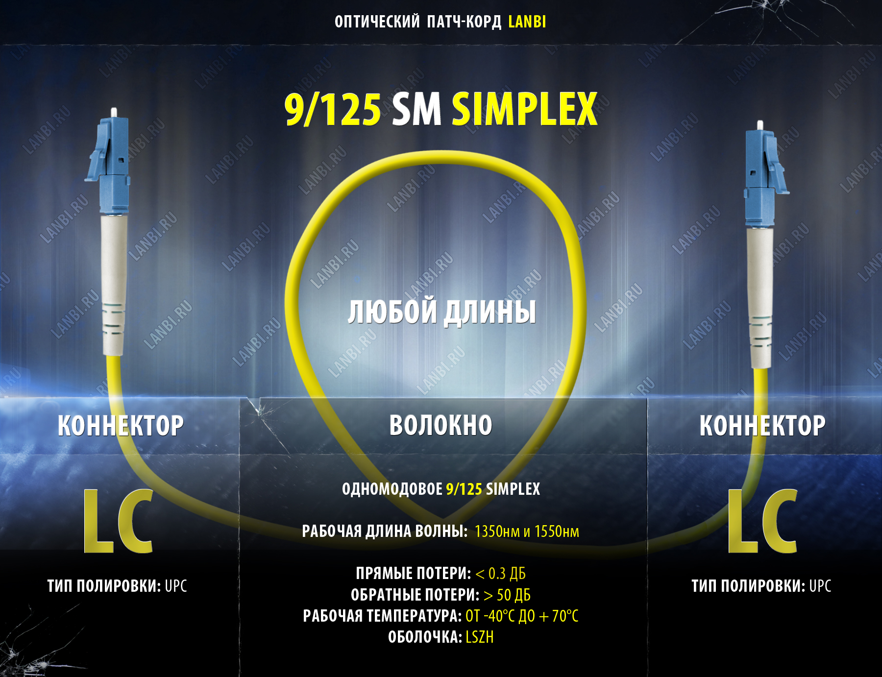 Одномодовый патч-корд так называется, потому что может одновременно пропускать только один световой сигнал (моду). Скорость передачи информации по такому волокну составляет 10 Гб/сек.