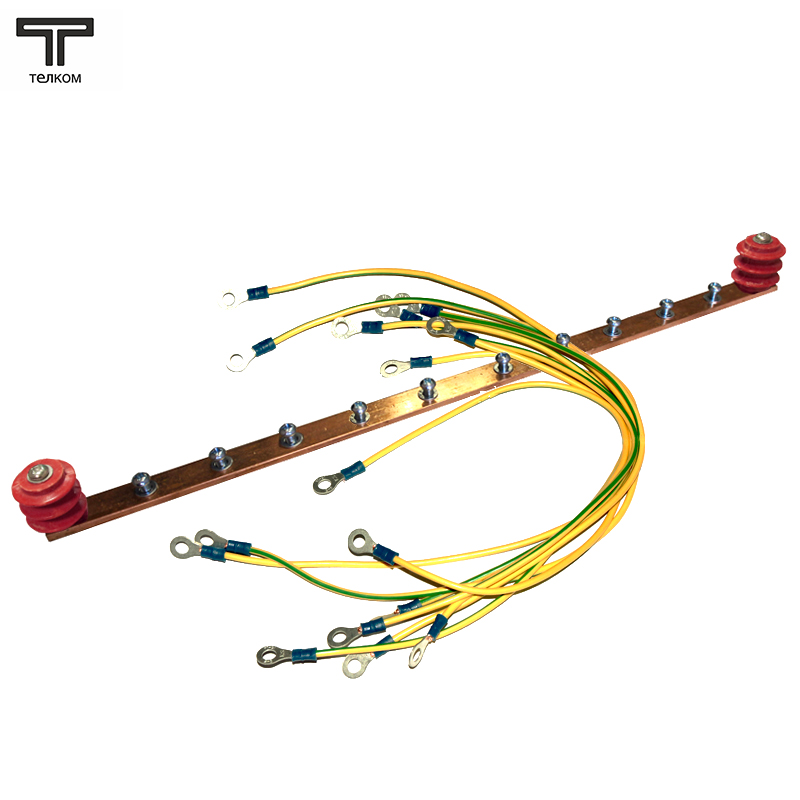 ТЕЛКОМ ШЗ.19.1 Шина заземления (медная) 19" горизонтальная с изоляторами (набор проводов с клеммами 0,5м - 5шт, 1м - 5шт, винты 10шт)