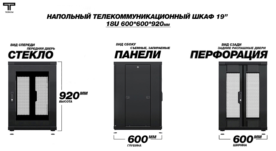 - Тип размера: 18U (ШхГхВ) 600х600x920мм.