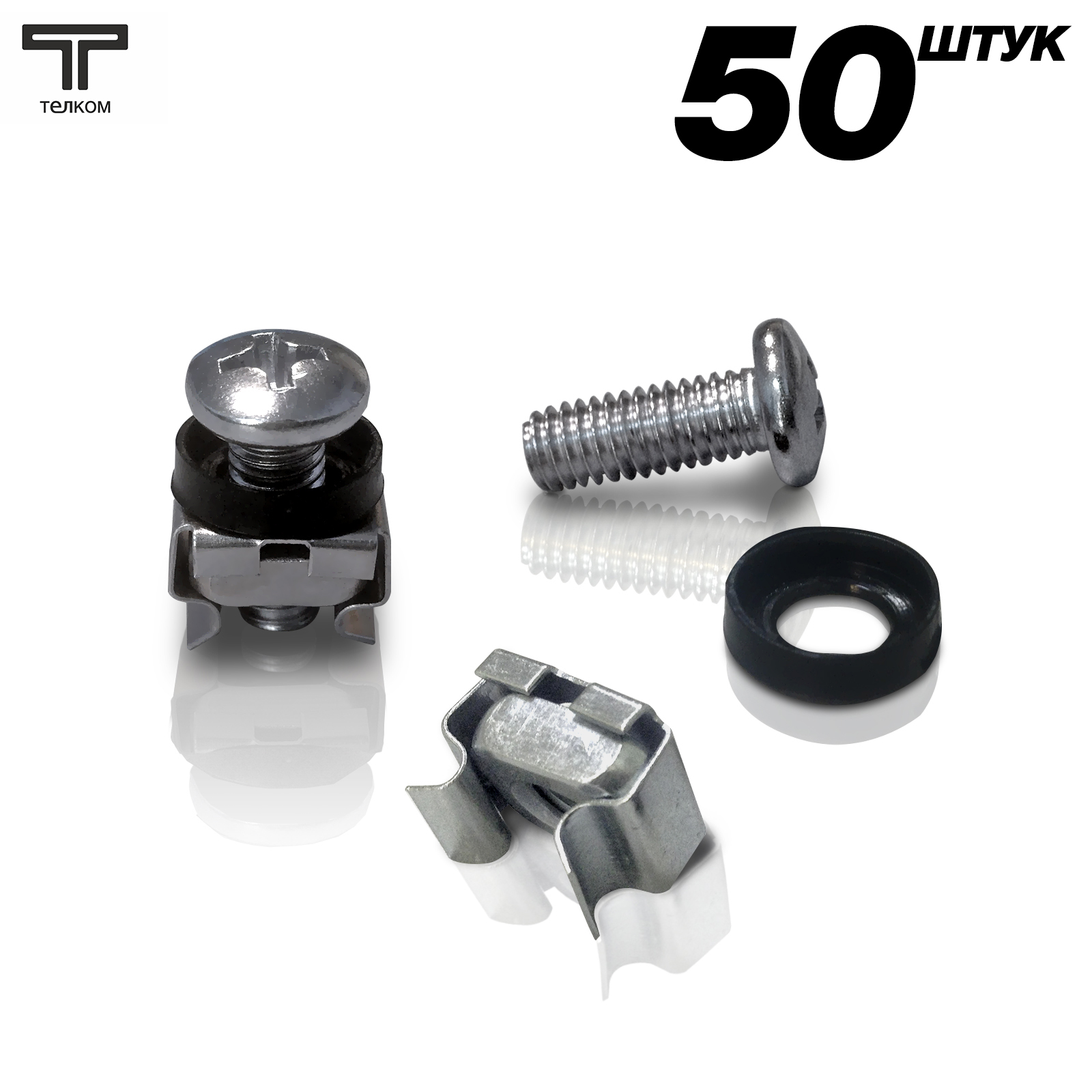 ТЕЛКОМ ВШГ.50 Винт с шайбой и гайкой M6 (клипса) для крепления 19" оборудования (упаковка 50шт)